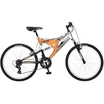 Mongoose 24 Inch Boy's Maxim BikeThe Mongoose Maxim boy's mountain bike is ready to ride on and off the trail with an aluminum dual suspension frame. It's equipped with 21-speed SRAM gripshifting and front and rear linear pull brakes. The front and rear suspension work together to give you a smooth overall ride by absorbing harsh bumps.