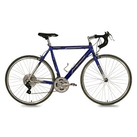 The GMC Denali 700C 21-Speed Road Bike is built around a lightweight aluminum road bike frame. You'll stop on a dime with the alloy calipers and brake levers, and the high-profile alloy Vitesse racing rims look as good as they perform. The Shimano derailleur and Shimano Revo shifts make it easy to change gears quickly and smoothly, and the high-performance 700c tires are up to the challenge of rigorous street racing. Lastly, this road bike will help you stay hydrated with the included alloy water bottle cage.